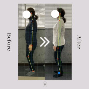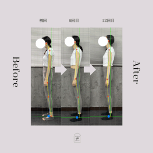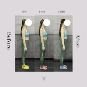 前に出ていた頭の位置が整い、膝の屈曲も改善されて、背筋がシャキッと整いました♩