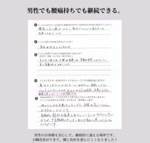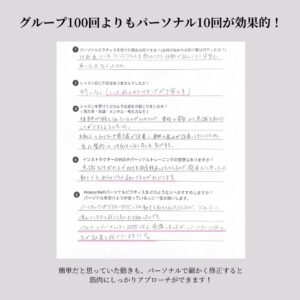 定期的なピラティスで姿勢不良や運動不足が解消!肩こりや腰痛の頻度が減って、ダイエットにも成功されました!