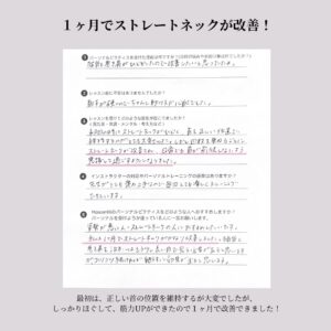 デスクワークでストレートネックに悩んでおられましたが、週2回の2ヶ月間で軸が整いました。